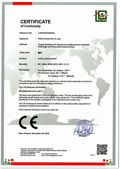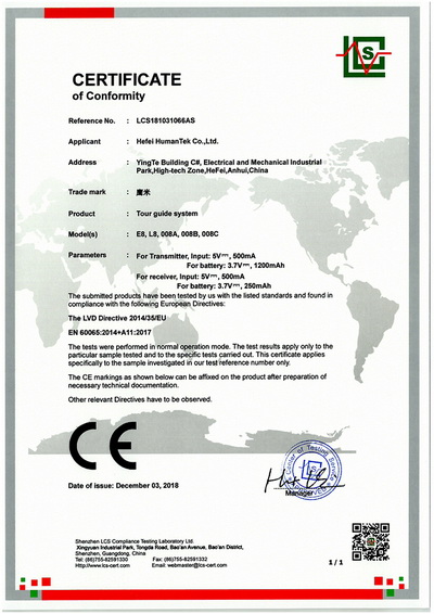 鷹米講解器系統(tǒng)榮譽(yù)證書